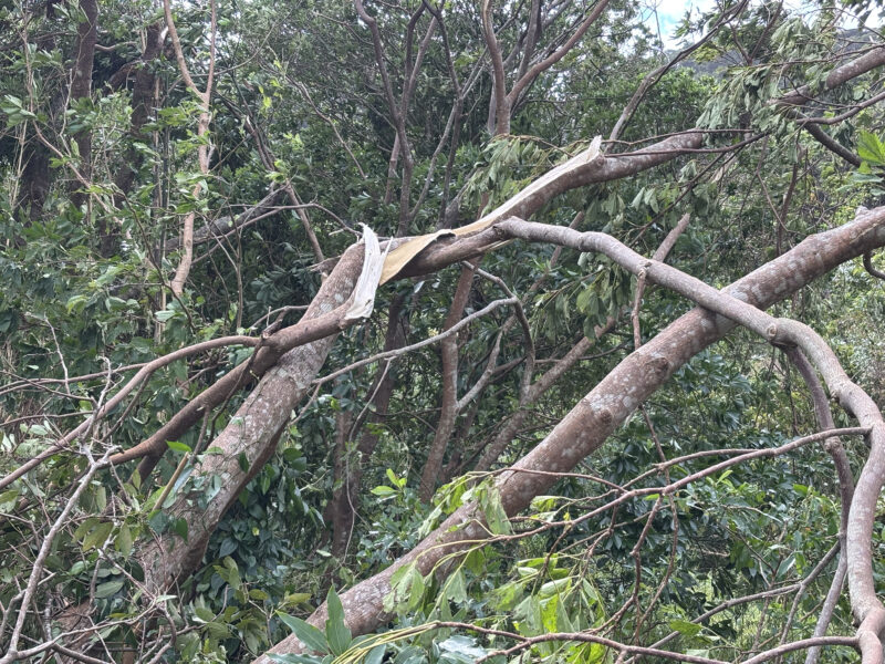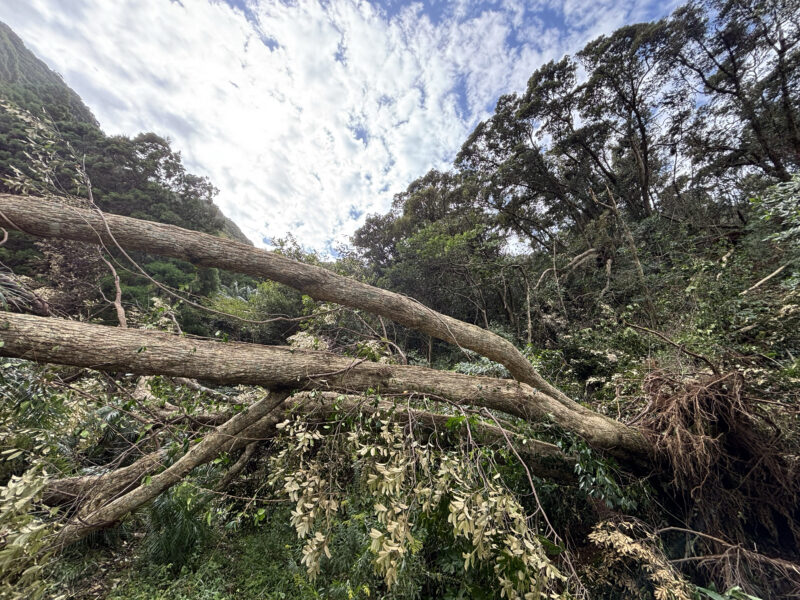 どこを見回しても木は折れていますし、たとえ大木であっても台風22号は容赦なく倒していました。