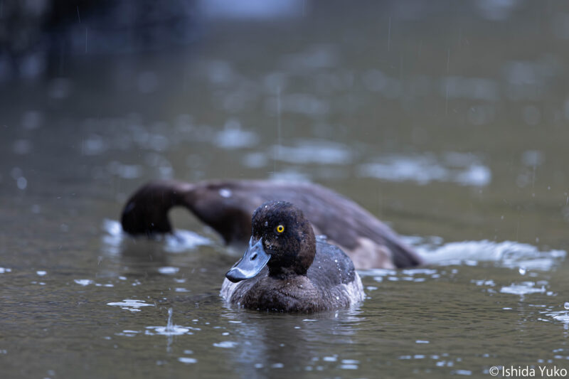 キンクロハジロは水中に潜って餌を採りますので、雨には強い野鳥ですね。