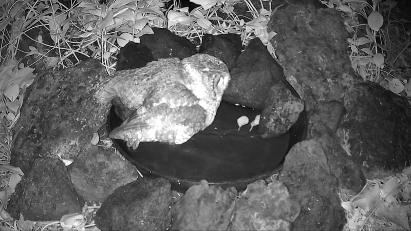 2026年2月上旬~中旬に、トレイルカメラが水浴び場で捉えたキジバト、カラスバト、シチトウメジロ、ヒヨドリ、ツグミ、トラツグミ、モズ、ハシブトガラス、オオコノハズク(?)を紹介しました。