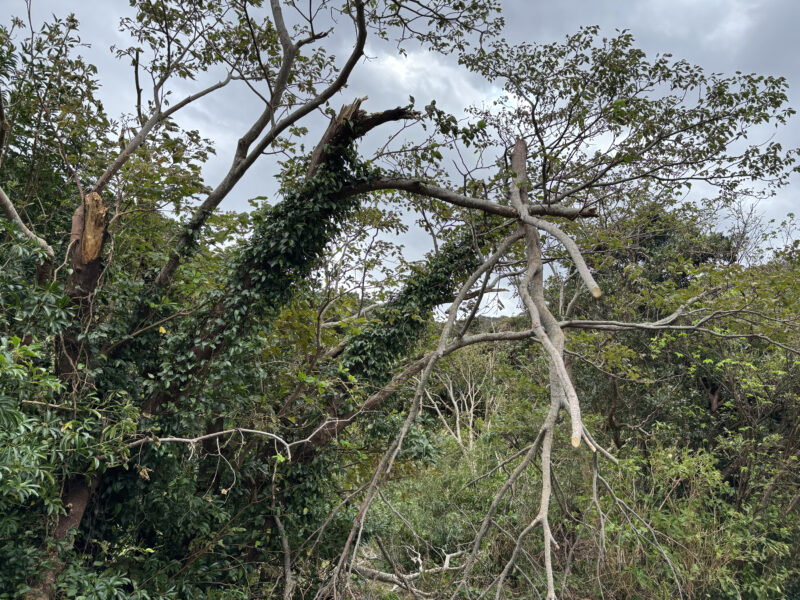 1ヶ月間経った後、落ち着いて周囲を観察しました。倒木だけでなく、多くの枝も折れていました。