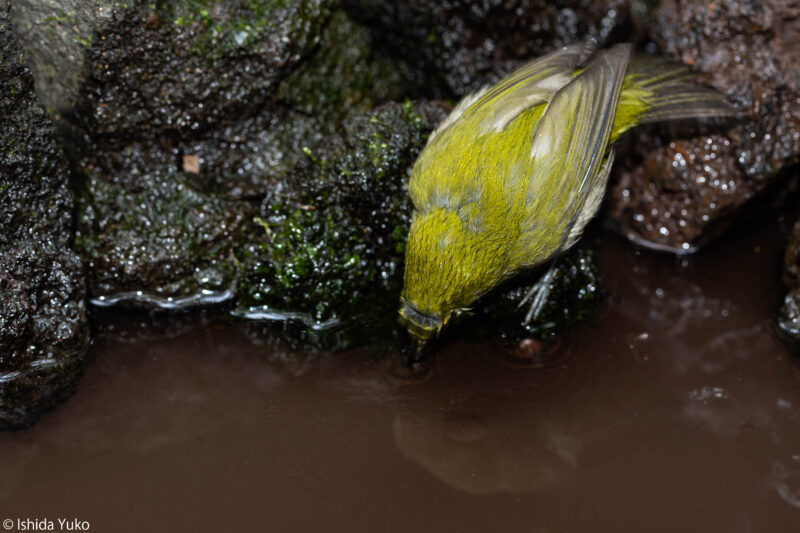 頭の中でその行動をイメージし、無人撮影でシチトウメジロの水飲みシーンを撮影しました。