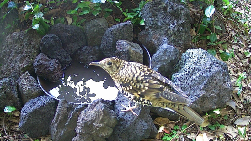 トレイルカメラのデータを基にシチトウメジロの水飲みシーンを撮影しました
