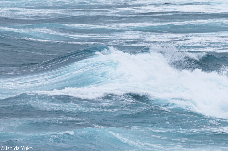 写真では波の大きさは伝わりづらいですが、八丈島に向かってきた波の波頂に強風があたり、水しぶきが高く舞い上がっていました。