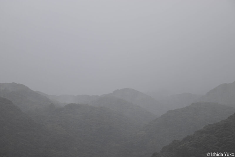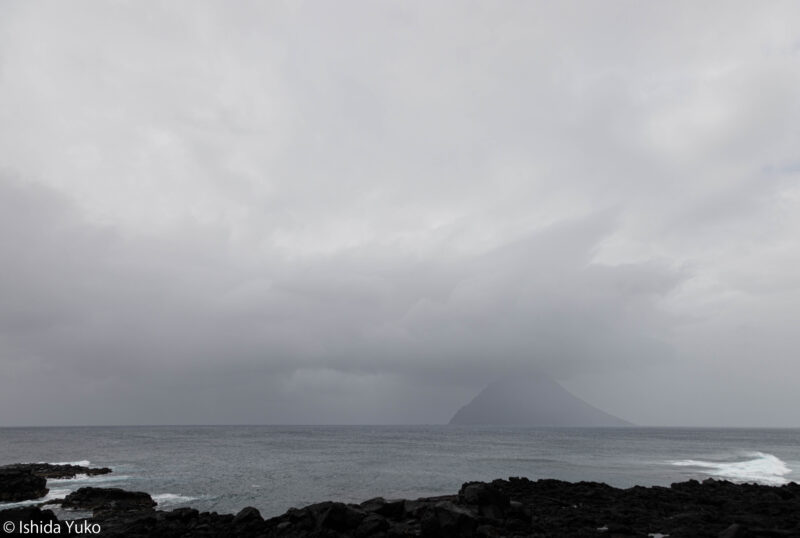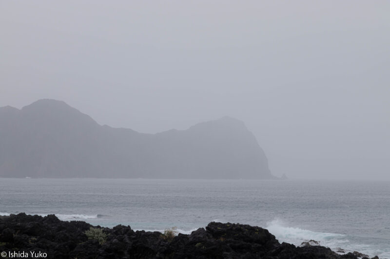 雨が降ったり止んだりで、視界が真っ白になることもありました。その中で、横間ヶ浦や八丈小島が見えた瞬間に写真を撮影しました。
