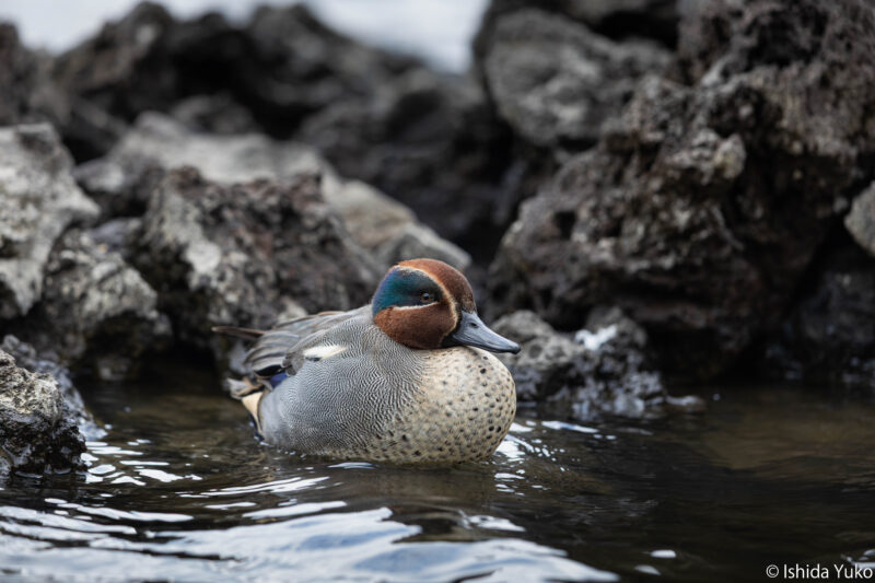 本土ではコガモは淡水のカモのように思われがちですが、八丈島では海で小さな群れで見られることが多いです。