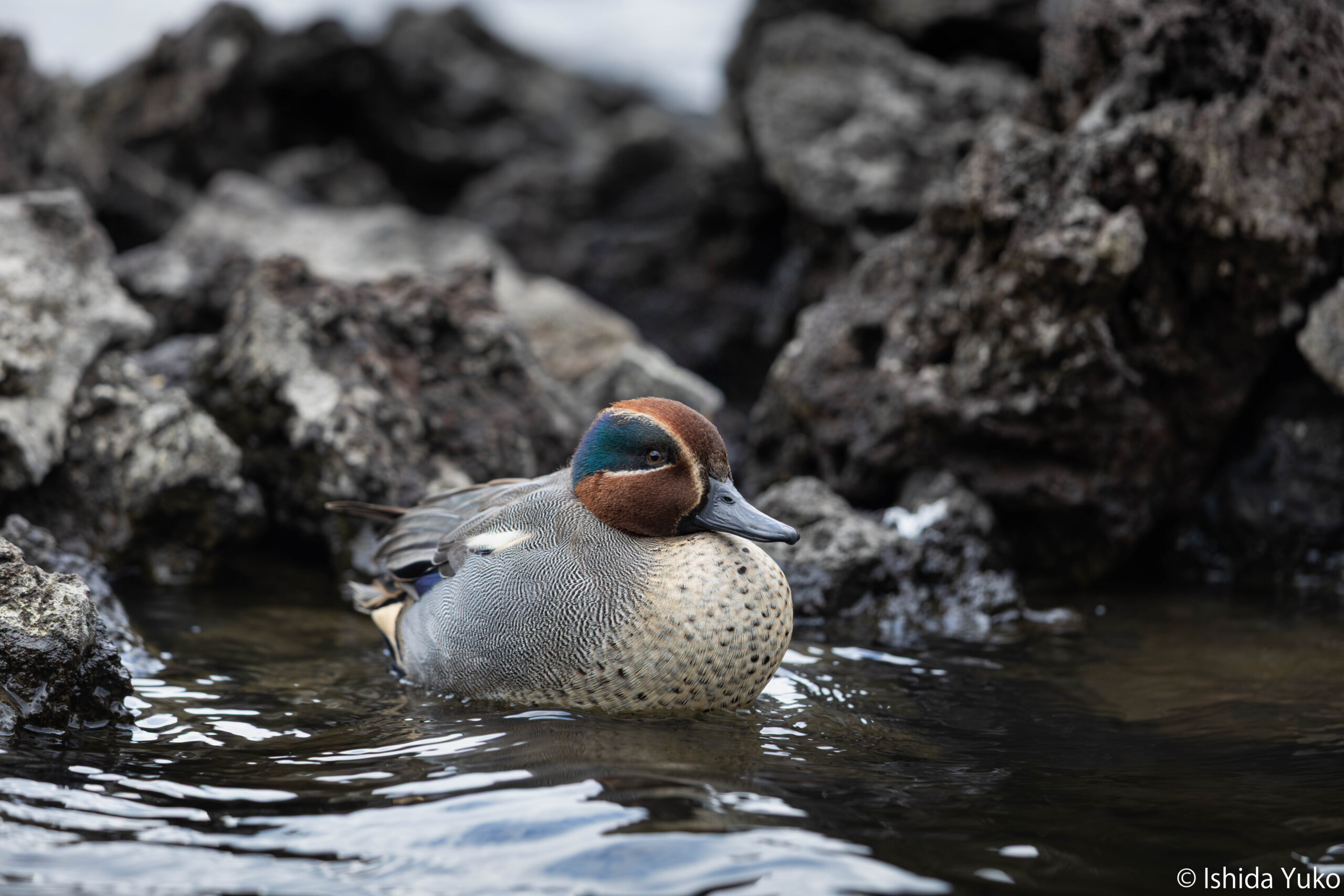 今日紹介する八丈島で見られるカモの仲間の中では、コガモが一番個体数が多いと思います。