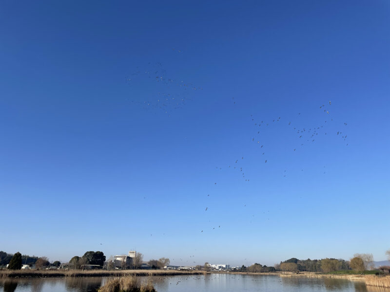 そして、少し名の通った探鳥地でしたら、視界はカモだらけなんてこともあります。水面も空もカモだらけです。