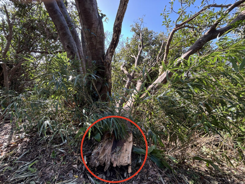 ところが、この折れた大木周辺には幹の対になる根元の部分が見当たりませんでした。
