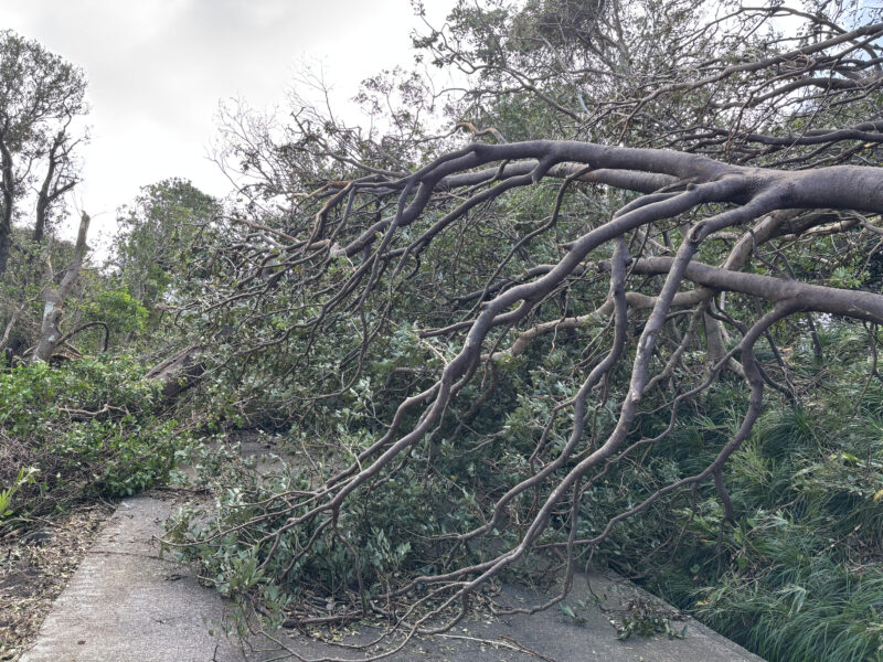 これまでの台風でも倒木がありました。それでも道路を横切るのは小さな物が1つか2つ。