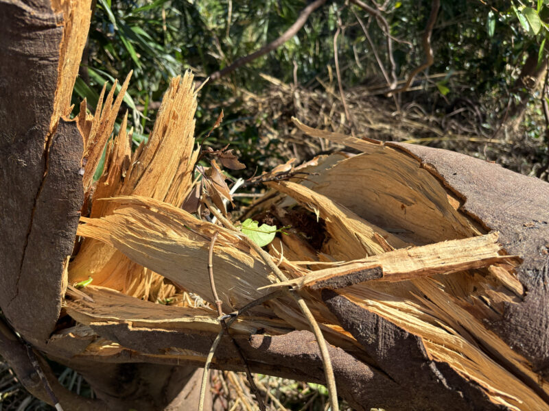 今回の風の恐ろしさをさらにもう一つ。丸で囲ってある箇所は大木の幹が折れたところです。