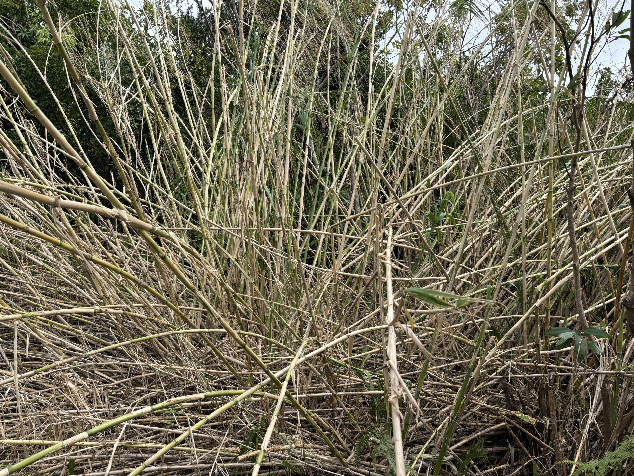 茎だけ残し全ての葉が無くなっていたことから、猛スピードの風が植物体全体に当たっていたことが分かります。