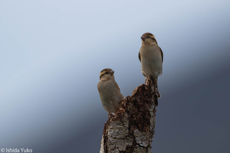 ニュウナイスズメを見つけた時は、初めは違和感を感じました。運良くスズメと一緒に居たため、体のシルエットが違うように思えました。
