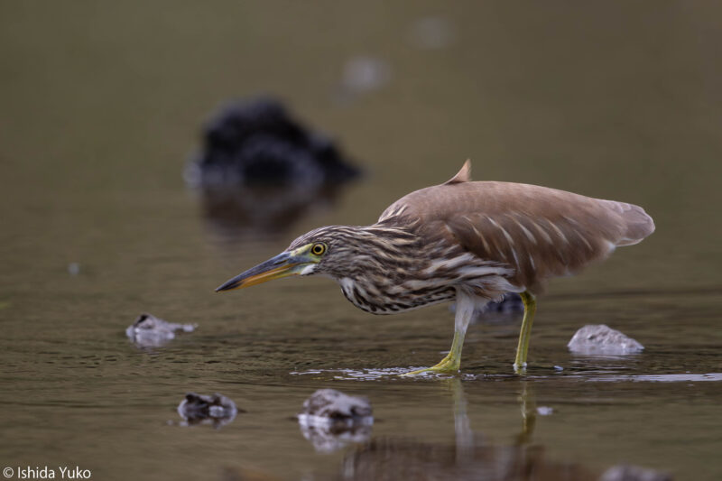 私に慣れ無害と認識された後は、私はガン無視されました。アカガシラサギはひたすら水面下の餌を獲っていました。