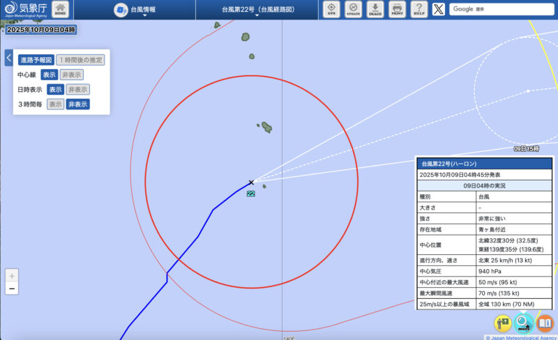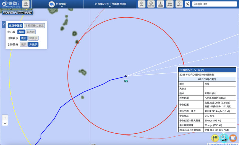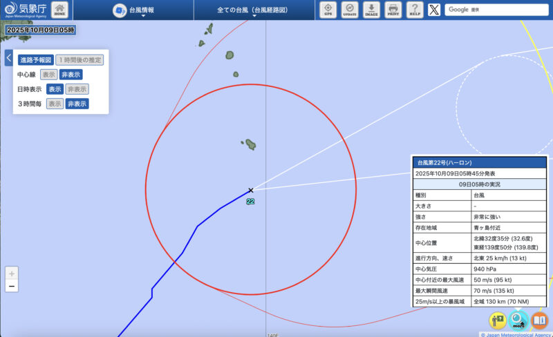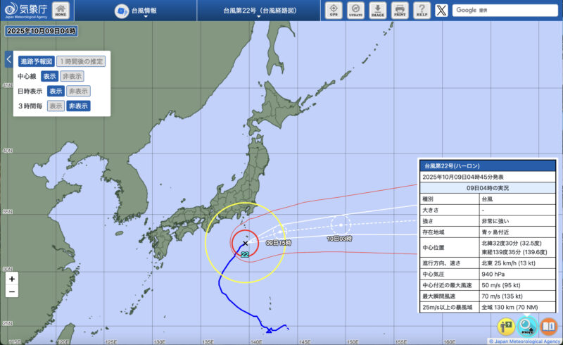 2025年10月9日に八丈島に大型の台風22号が最接近しました。