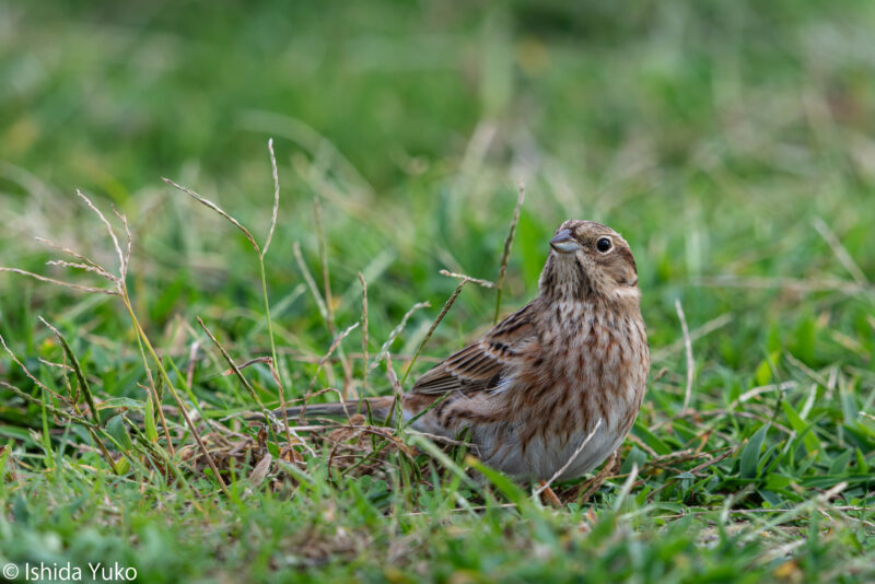後ろ姿はヒバリと全く違うので、ホオジロの仲間だと思いました。しかし、上述のホオジロ、カシラダカ、ミヤマホオジロ、オオジュリンとは似ておらず、当然、迷鳥のズグロチャキンチョウであるはずがありません。