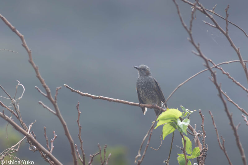 しかし、八丈島では、山と海の距離が近いので、同じ枝にイソヒヨドリとヒヨドリが交代で止まることがあります。
