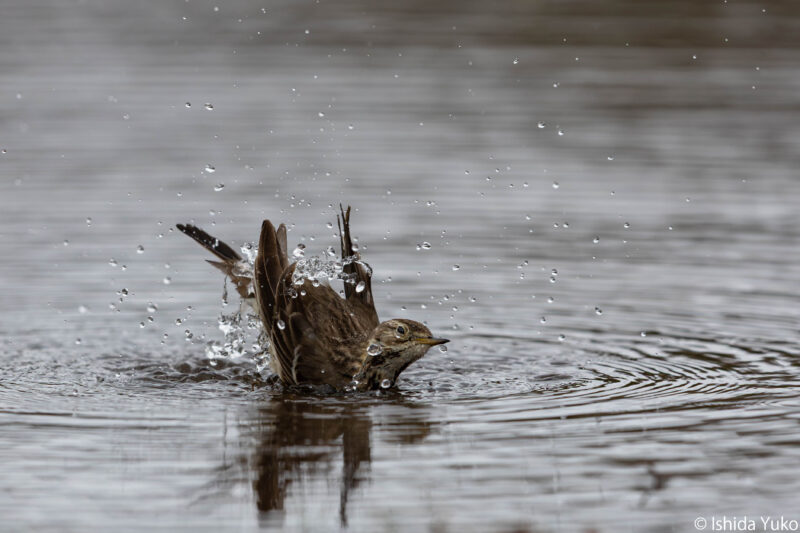 この雨、タヒバリにとっては恵みの雨です。思う存分水浴びを楽しんでいました。