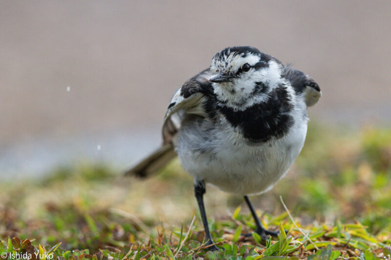 雨の中ですが、ミサゴは空を飛び、地上ではタヒバリとハクセキレイが、雨で地上付近に集まってきた昆虫やその幼虫を探していました。