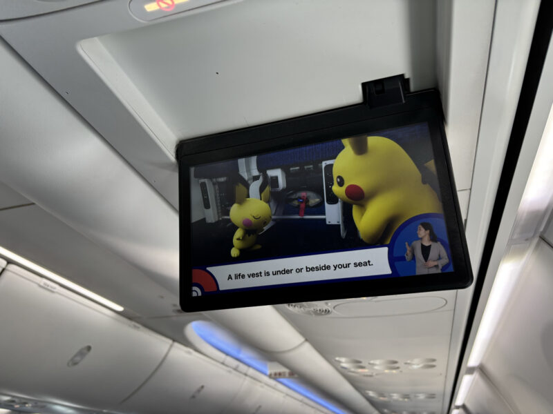 機内安全ビデオに出演しているピカチュウを楽しみながらの帰路です。