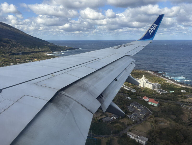 八丈島からの離陸の様子はこんな感じでした。いつ見ても美しい景色ですよね。