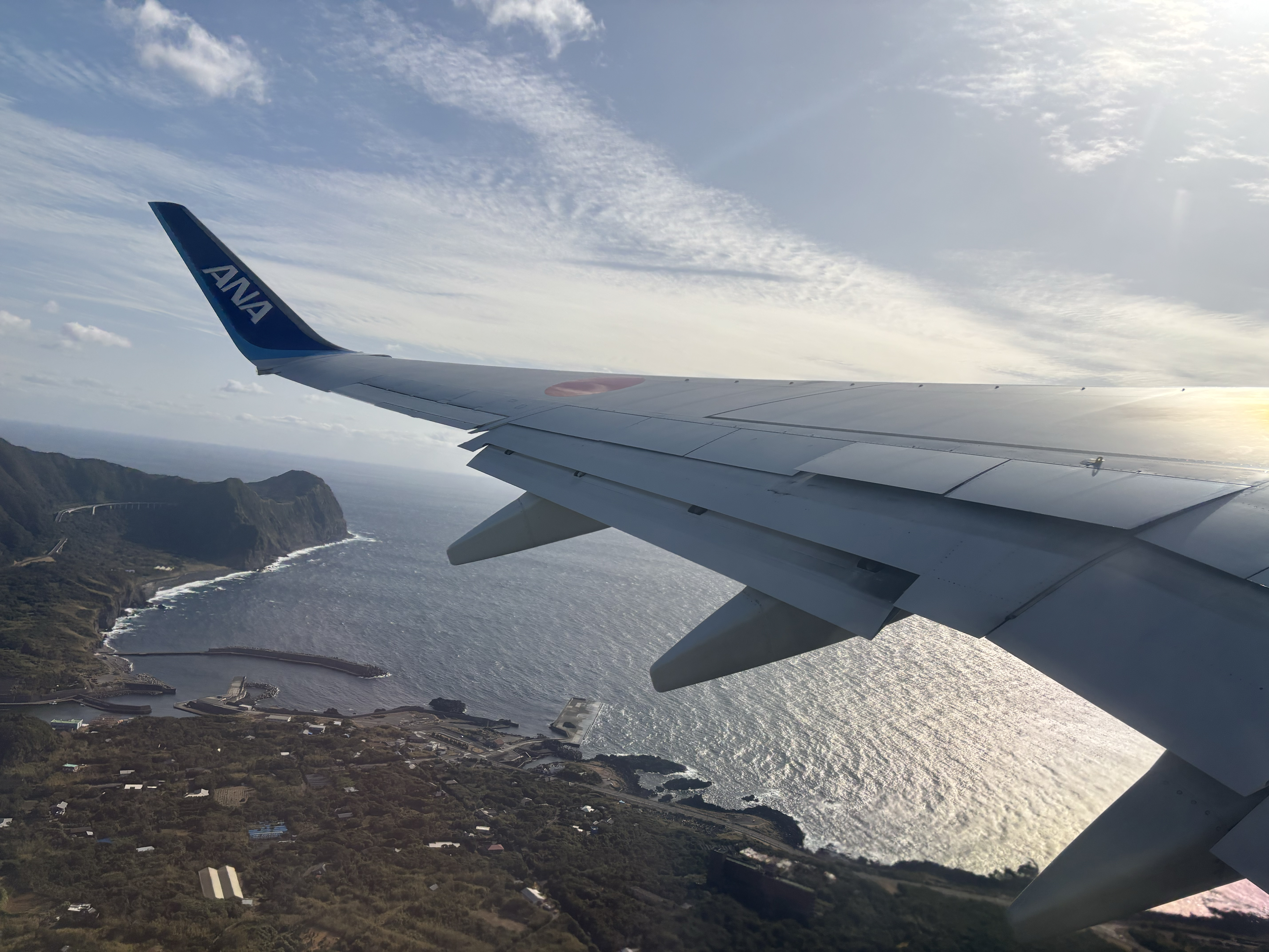 八丈島からの離陸の様子はこんな感じでした。いつ見ても美しい景色ですよね。