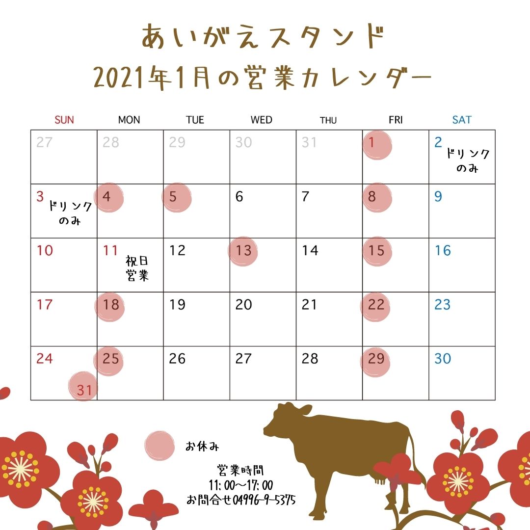 いつもですと、あいがえスタンドで軽食や飲み物が購入できるのですが、営業は昨日まででした。2021年は1月2日から営業だそうです。